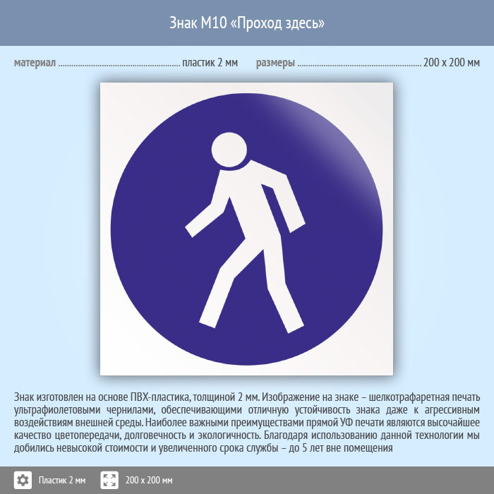 Знак M10 «Проход здесь» (пластик, 200х200 мм) в Наро-Фоминске купить