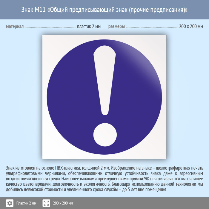 Знак M11 «Общий предписывающий знак (прочие предписания)» (пластик, 200х200 мм) в Наро-Фоминске купить