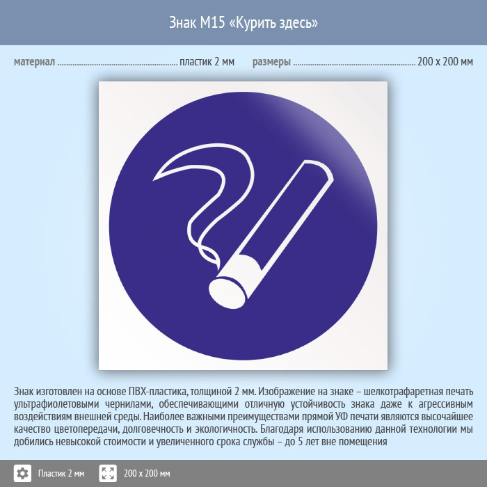 Знак M15 «Курить здесь» (исключен) (пластик, 200х200 мм) в Наро-Фоминске купить