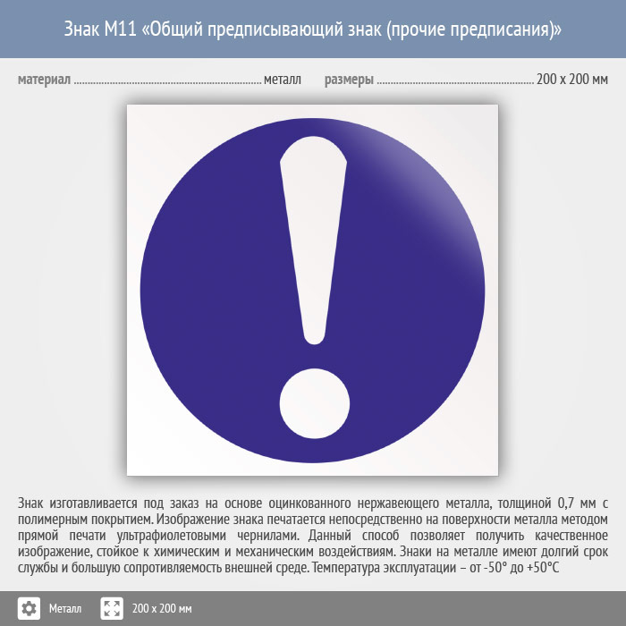 Знак M11 «Общий предписывающий знак (прочие предписания)» (металл, 200х200 мм) в Наро-Фоминске купить