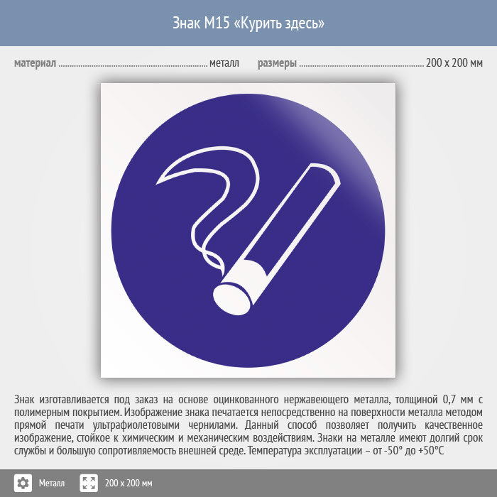 Знак M15 «Курить здесь» (исключен) (металл, 200х200 мм) в Наро-Фоминске купить