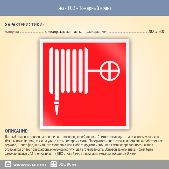 Знак F02 «Пожарный кран» (светоотражающая пленка, 200х200 мм) в Наро-Фоминске купить