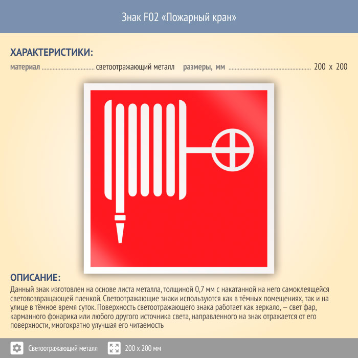 Знак F02 «Пожарный кран» (светоотражающий металл, 200х200 мм) в Наро-Фоминске купить